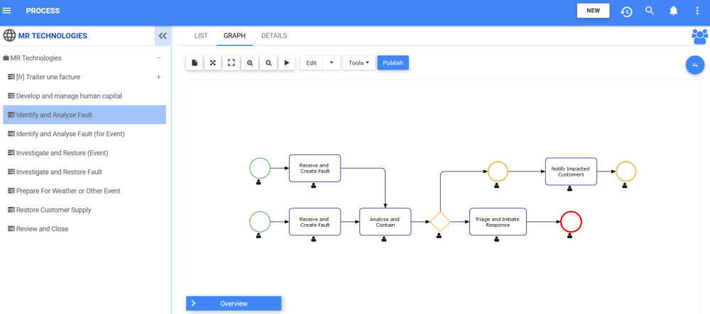 - Accédez au mode d’édition en plein écran en utilisant le bouton Éditer et modifiez la carte de processus