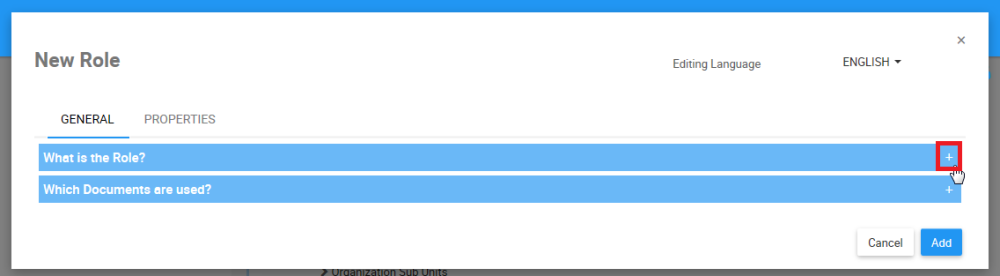 des icônes pour développer et masquer les différentes sections dans chaque onglet de la fenêtre Nouveau rôle. Affichez les bonnes informations sur le rôle dans chaque section.