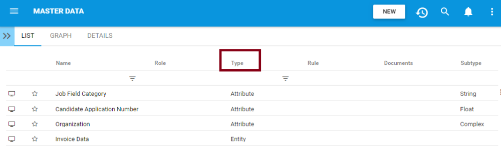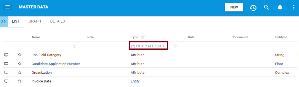3. Sélectionnez le filtre désiré. Dans cet exemple, nous sélectionnerons Attribute et Master Data Set.