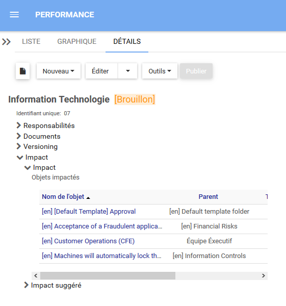 2. En bas de la page Détails, cliquez sur Impact pour développer la section
