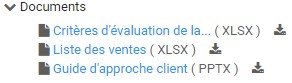 Cette section répertorie tous les documents liés à l’objet considéré. Cela fournit aux utilisateurs une liste de documents pertinents, ainsi que la possibilité d’accéder directement à ces documents. Les utilisateurs fournissent en outre des détails concernant le type de document (docx, pptx, URL, xlsx, etc.)