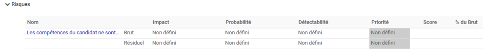 La section Risques affiche tout Risque lié au Contrôle spécifique que vous visualisez.