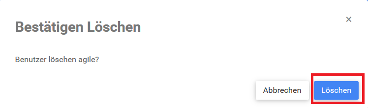 2. Es erscheint folgendes Fenster und Sie können den Benutzer löschen, indem Sie auf das Feld “Löschen” klicken.