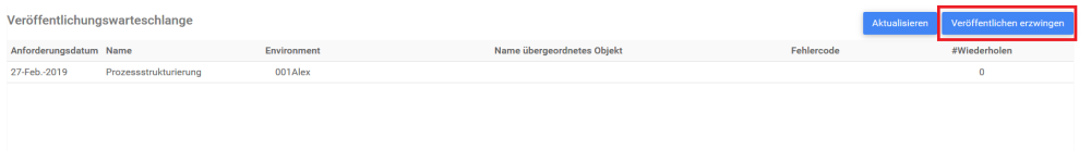 Die Schaltfläche Force Publish wird von Systemadministratoren verwendet, wenn die Veröffentlichung von Elementen zu lange dauert. Der Systemadministrator kann dann erzwingen, dass die Elemente veröffentlicht werden |