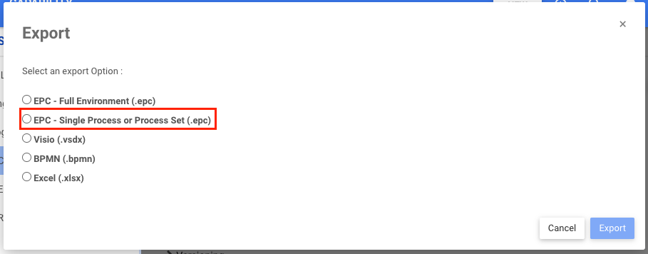Follow the steps below to export specific EPC Objects. The export wizard will create a data file with the format .epc.