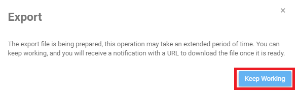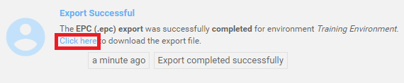 6. The “Export Successful” notification contains the link to download the export file in the requested format.