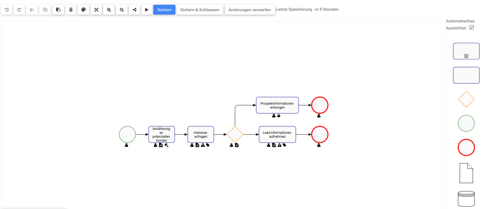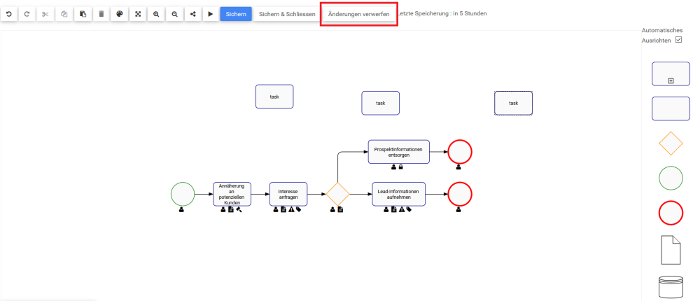 - Die in der Prozessabbildung vorgenommenen Änderungen wurden nicht gespeichert. Sie sehen die letzte Version der Karte, die gespeichert wurde.