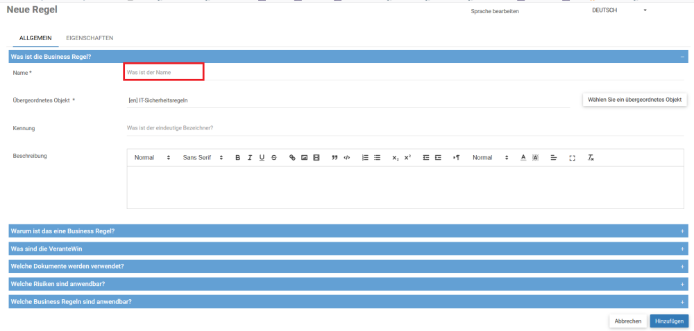 - Geben Sie den Namen der Regel in das Feld “Wie lautet der Name?” ein.