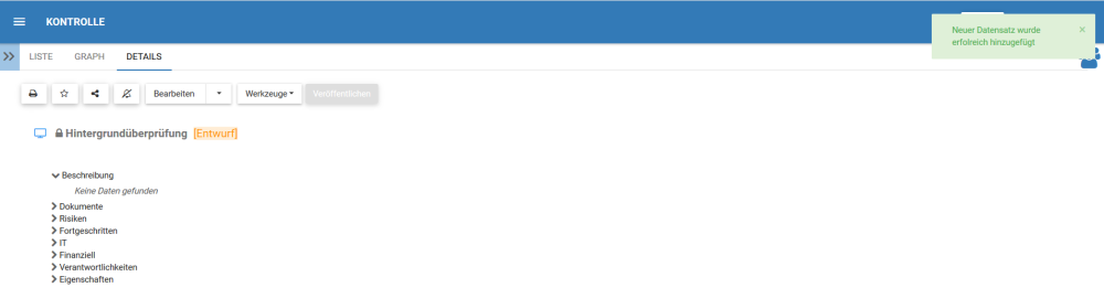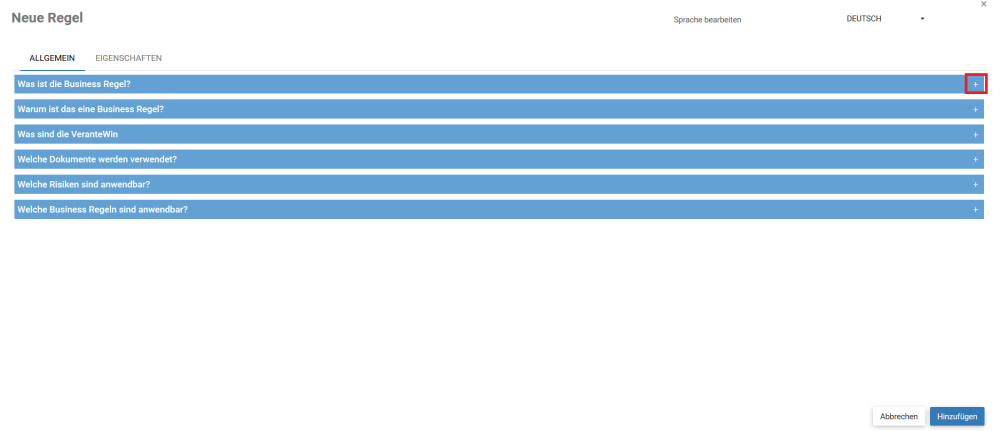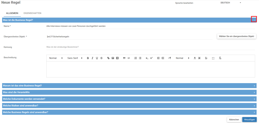i) Um Abschnitte auszublenden, klicken Sie auf das Symbol