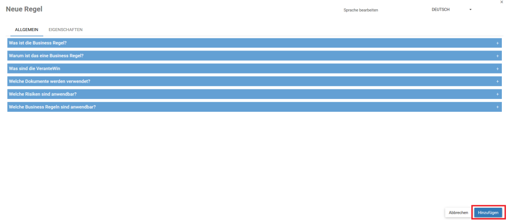 Web Modelers can create Rules on the WebApp and organize them within Regelordner.