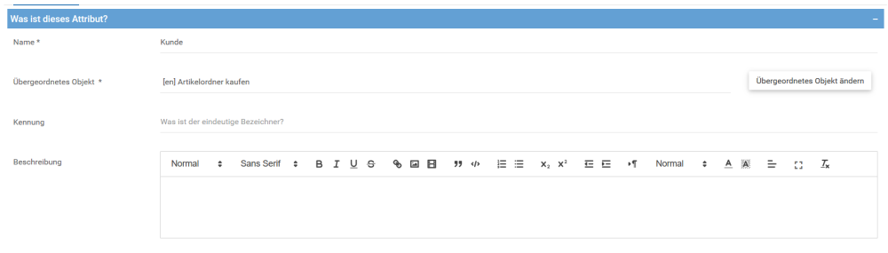 | Beschreibung | Dieses Feld beschreibt das Attribut im Detail. Das Rich-Text-Format ermöglicht Textformatierungen, Bilder, URLs, Tabellen, etc. |