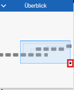 Um über das Übersichtsfenster heranzuzoomen, ändern Sie die Größe des Ansichtsfensters, indem Sie auf die rechte untere Ecke des Rechtecks klicken und sie ziehen.