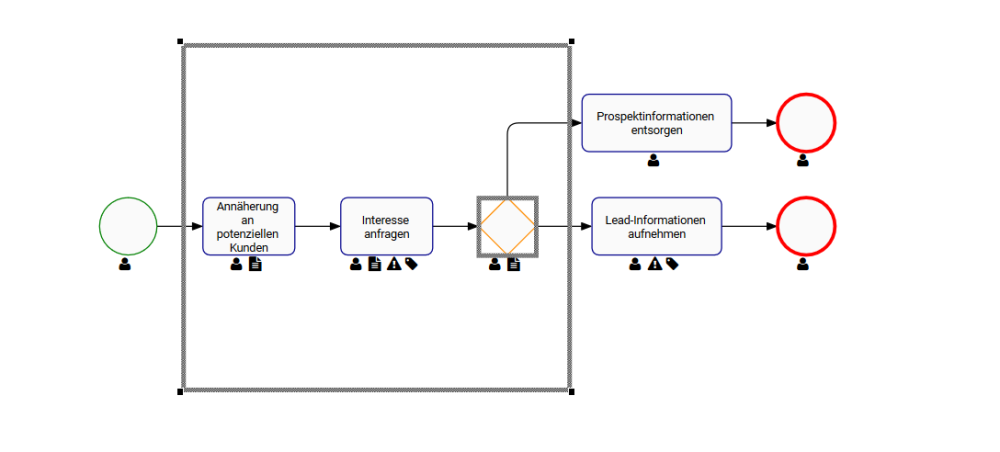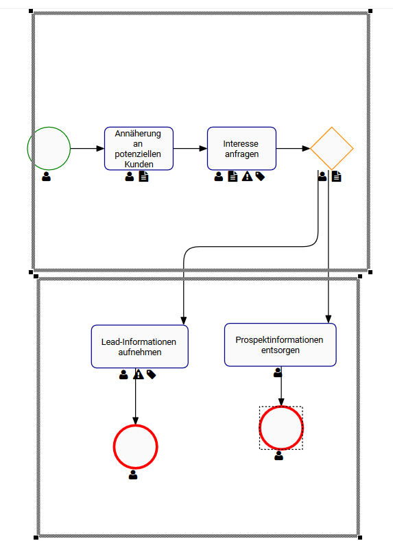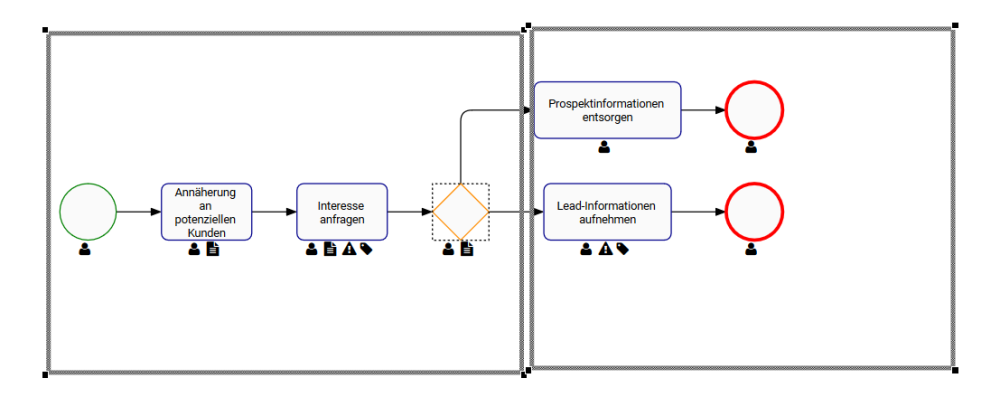 9) Um den Inhalt der Seite neu zu organisieren, wählen und ziehen Sie die Flow Shapes an die gewünschte Position. Sie können auch Symbole ein- und ausblenden sowie Annotationen ziehen und neu organisieren.