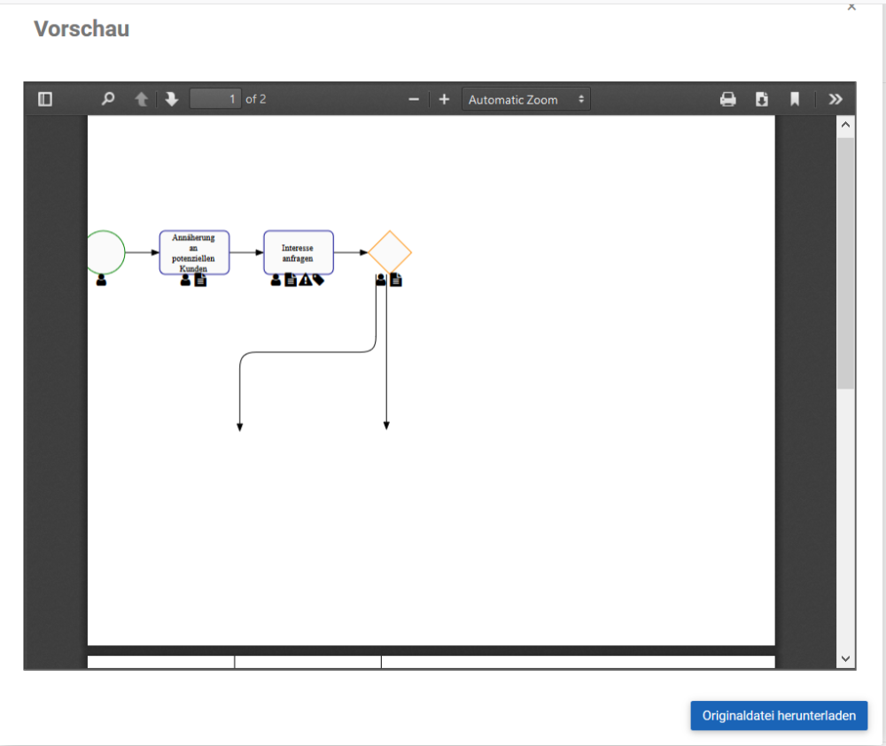 Von hier aus können Sie die Prozesslandkarte als PDF herunterladen und typische Verfahren zum Drucken von Dokumenten verfolgen.