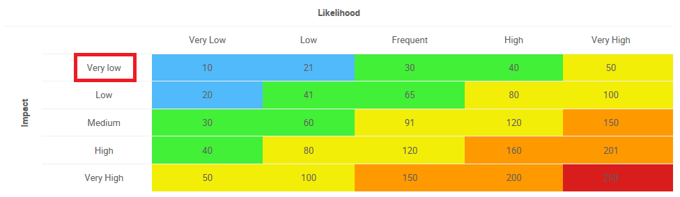 1. Select the Risk Impact you want to edit. For this example, the “Very Low” Impact is selected