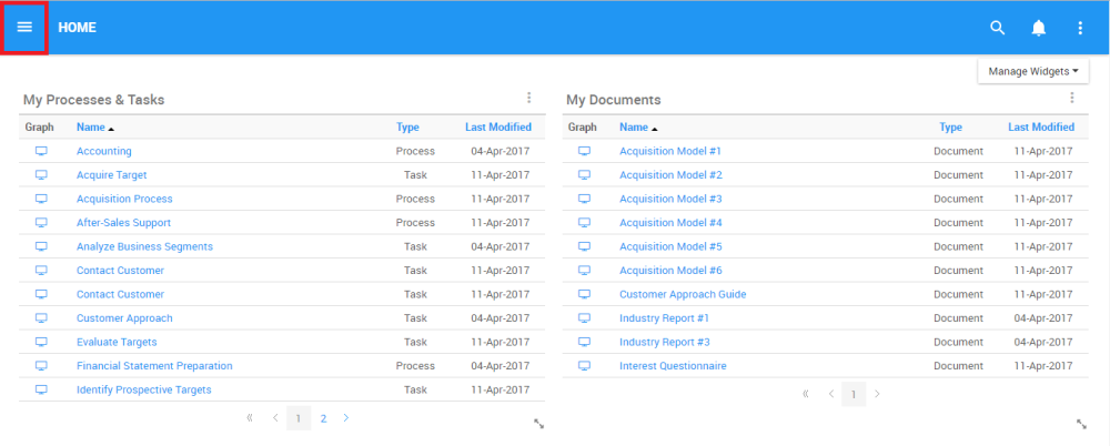 2. Click the Navigation Menu, and Navigation Panel will be generated on the left-handed side of the screen