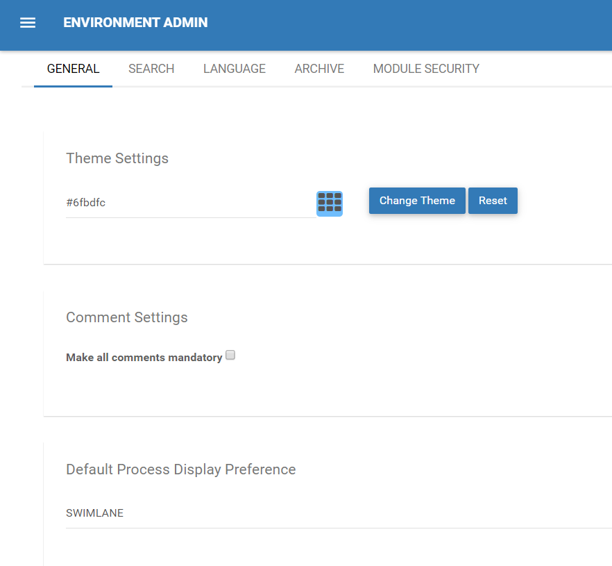 The “Default Process Display Preference” field’s purpose is to allow an authorized user to choose the default process setting for any new process set and per environment.