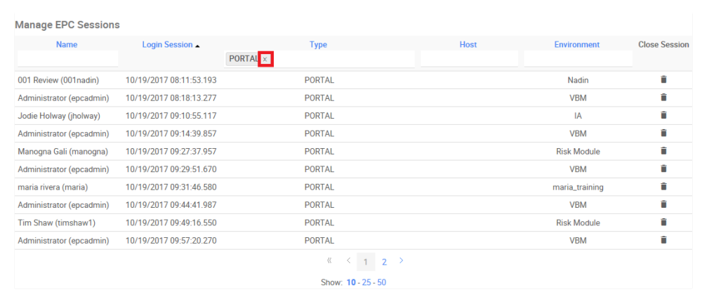 Les administrateurs système peuvent supprimer les filtres sur les sessions Gérer EPC après avoir ajouté un filtre
