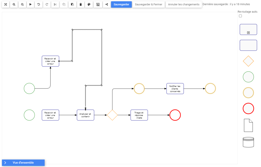 Les utilisateurs peuvent réacheminer manuellement les flux de processus pour personnaliser et organiser leurs mappages de processus.