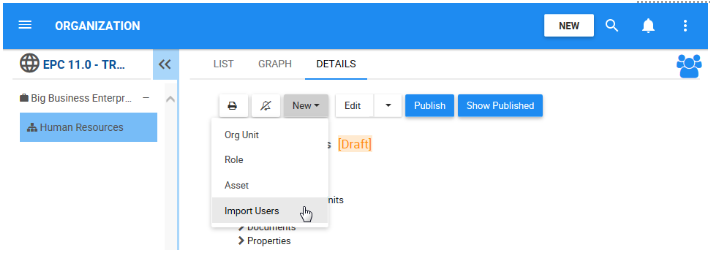 Let’s now import your EPC user, and assign it to the “HR Manager” role.