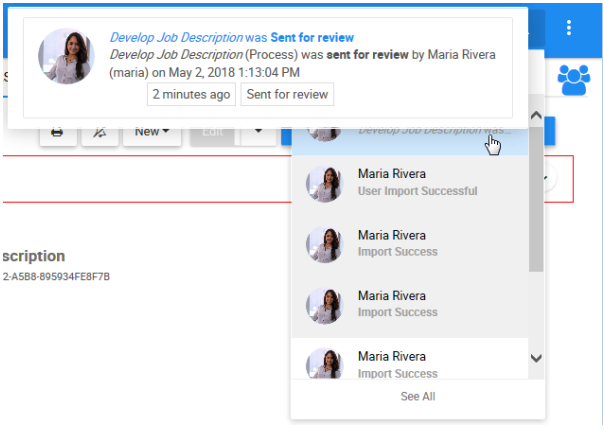 5. Since your user is the “HR Manager,” and we previously set the “HR Manager” as the approver, you now automatically received a notification letting you know you need to approve or reject the changes made to the process. The notification appears on the top-right of your EPC page with this icon