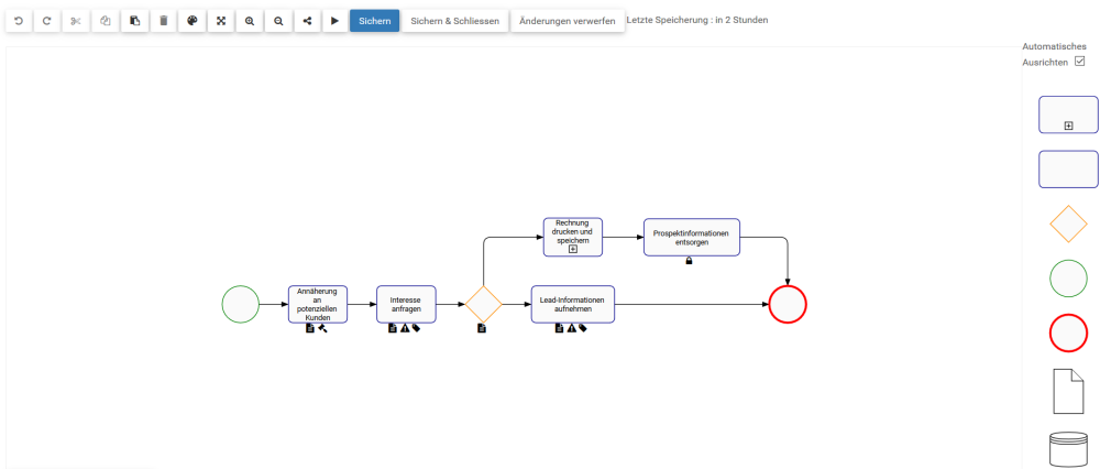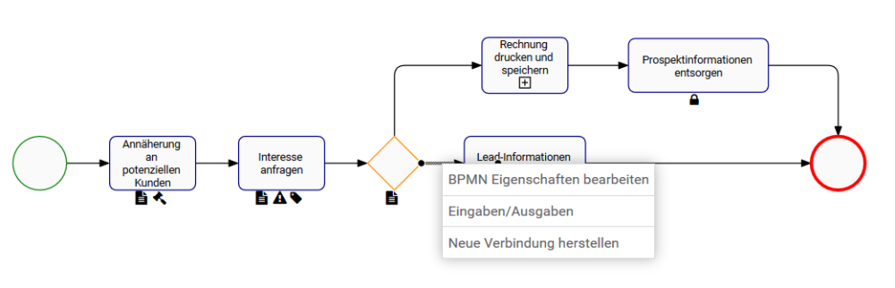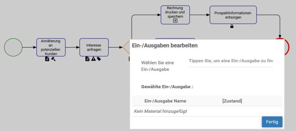 | Ausgaben | Benutzer können die aus einem Prozess resultierenden Ausgaben einsehen | Lösung der Kundenproblematik, Rechnungsversand, Auftragsabwicklung |