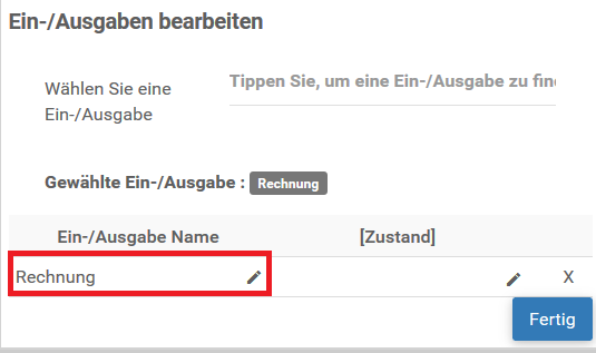 - Bearbeiten Sie den Namen des Input/Outputs.
