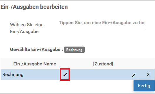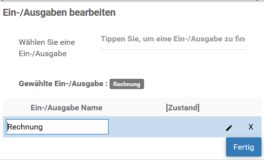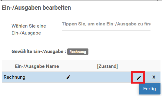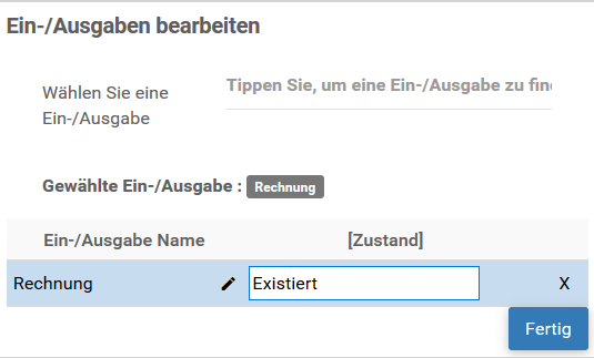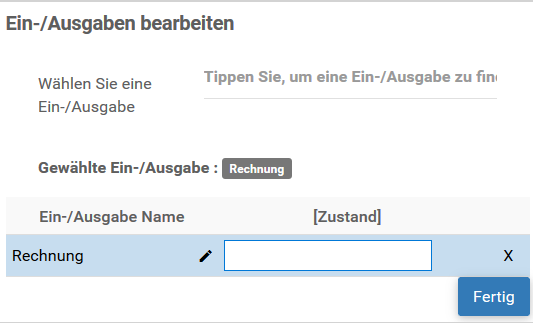 , um den Status des Ein-/Ausgangs zu bearbeiten.