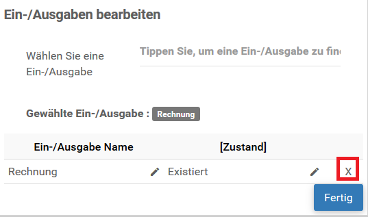 - Klicken Sie auf das “X”, um den Input/Output zu entfernen.