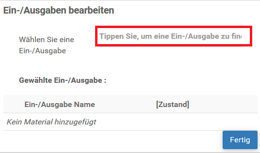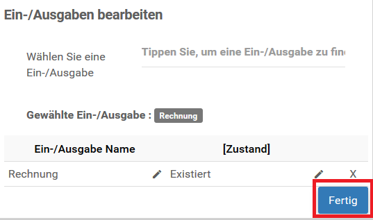 - Wählen Sie das Feld “Ein-/Ausgänge”.