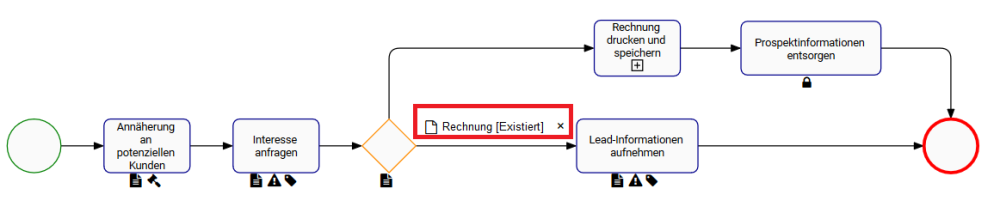 In diesem Beispiel lautet der Status der “Rechnung” “Existiert”.