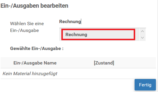 - Der Input/Output, “Rechnung”, liegt auf dem Tisch.