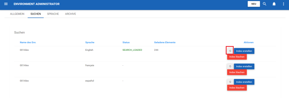 5. Nachdem der Index erstellt wurde, wählen Sie das Aktualisierungssymbol