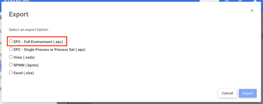 Follow the steps below to export data from your current EPC environment. The export wizard will create a data file with the format .epc.
