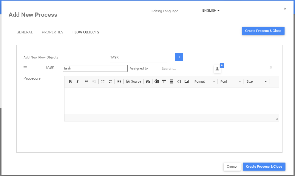 This functionality allows users who aren’t familiar with BPMN methodology’s best practices to create flowobjects right from the details page of a new process.