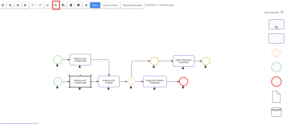 The Copy function allows Web Modelers to Copy shapes from the process map. The Copy button