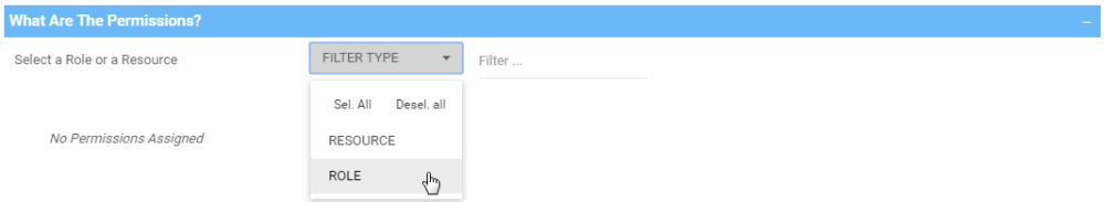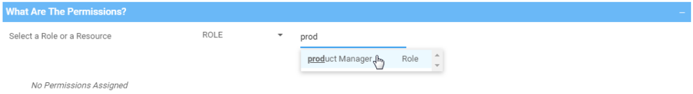 2. Navigate to the “Select a Role or a Resource” field, and type the name of the Role you want to associate. From the search suggestions, click to select the Role you want to associate.