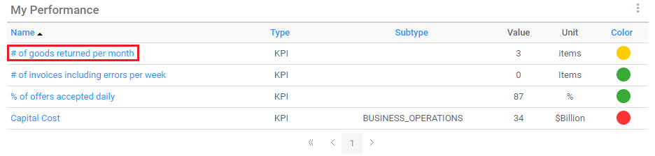 2. Click on the name of the Performance indicator to navigate to the item’s Details page