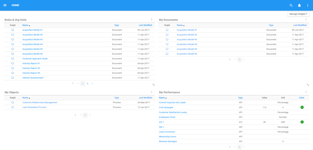 The Web App is an integrated part of the Enterprise Process Center. The App presents a comprehensive view of the organization. All your activities and tasks are listed for you to manage and execute.