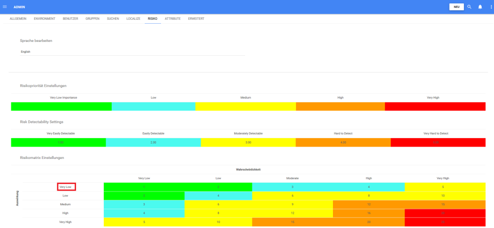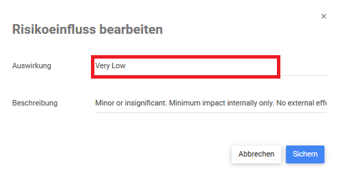 - Wählen Sie die Risikoauswirkungen aus, die Sie bearbeiten möchten. Für dieses Beispiel wird der “Very Low” Impact ausgewählt.
