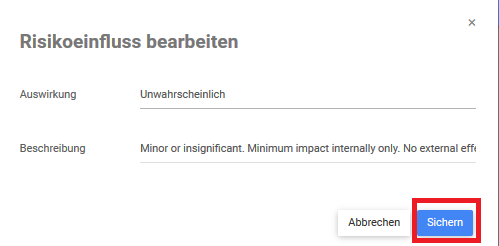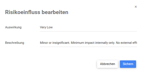 - Dadurch wird ein Popup-Fenster erstellt, in dem die Systemadministratoren die entsprechenden Informationen über die Risikoauswirkungen eingeben können.