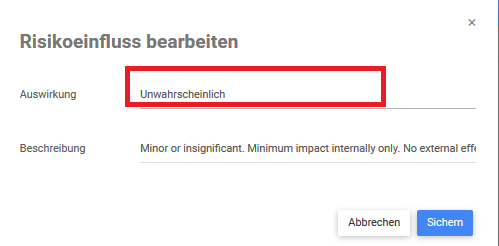 - Um den Namen der Risikoauswirkung zu bearbeiten, aktivieren Sie das Textfeld Auswirkung.
