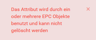 3. Wenn das Attribut von Objekten verwendet wird, können Sie es nicht löschen, und Sie erhalten die folgende Fehlermeldung: