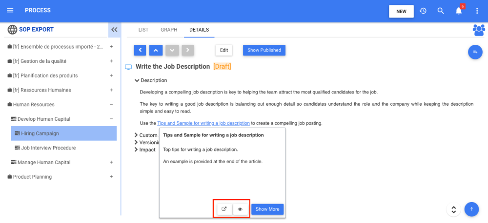 When linking an EPC Document, the possibility to view or download the document or go to the URL directly from the pop-up window is available, for faster access to the documents linked to a term.