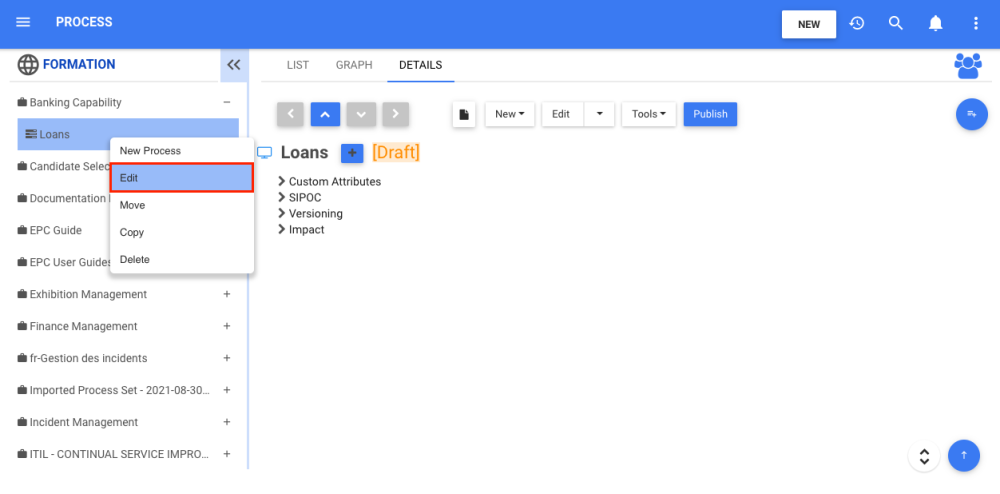 2. Right-click on a Process Set or Process and select Edit from the dropdown menu.
