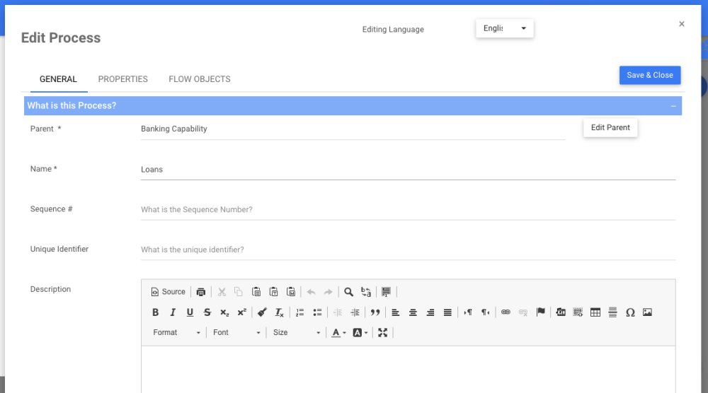 3. The Edit form will appear. When the desired changes have been made, click on the Save & Close button.