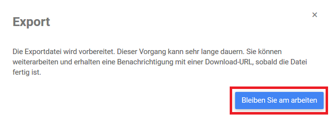4. Es öffnet sich ein Fenster, in dem Sie über den Export informiert werden. Klicken Sie auf Weiterarbeiten.