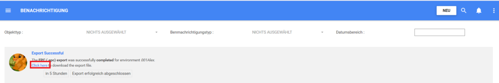 6. Die Meldung “Export erfolgreich “ enthält den Link zum Herunterladen der Exportdatei im gewünschten Format.