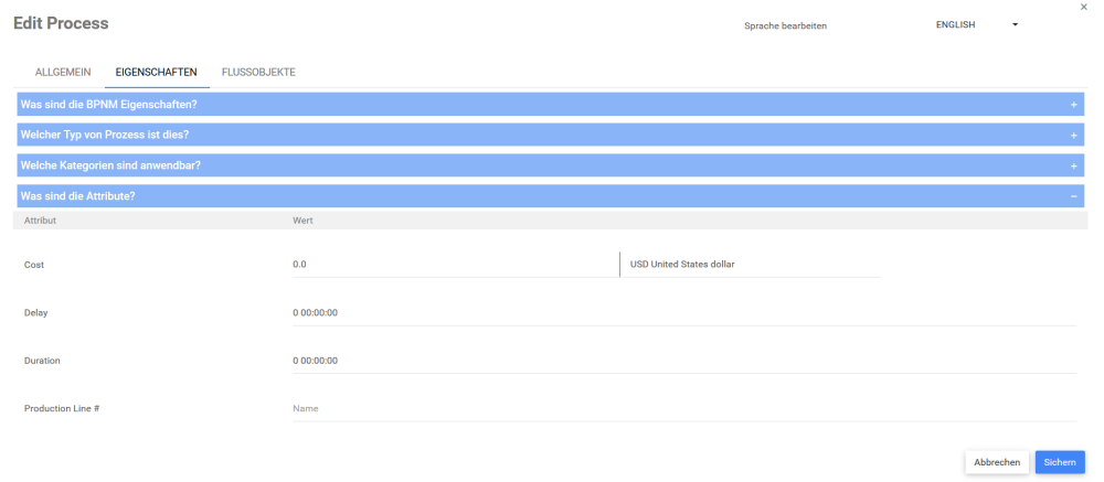Die Objektattribute dienen der schnellen Klassifizierung eines Objekts basierend auf einer vom Web Modeler zugewiesenen Datenmenge. Attribute werden verwendet, um eine Klassifizierungsschicht für Positionen hinzuzufügen. EPC wird mit einer Liste von Attributen für jedes Objekt vorinstalliert, aber Systemadministratoren können Objektattribute erstellen und anpassen.