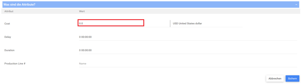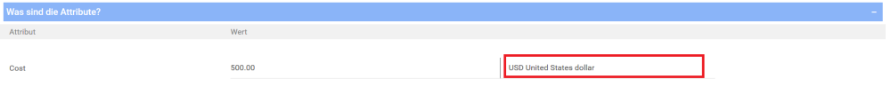1. Navigieren Sie zu einem Objektattribut mit einem Währungstyp. Navigieren Sie in diesem Beispiel zum Feld “Kosten”.